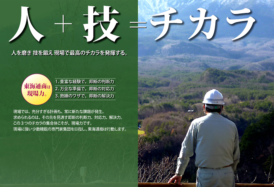 総合力、技術知識、確信技術、人間尊重。4つの理念を結集し社会に貢献します。 |
